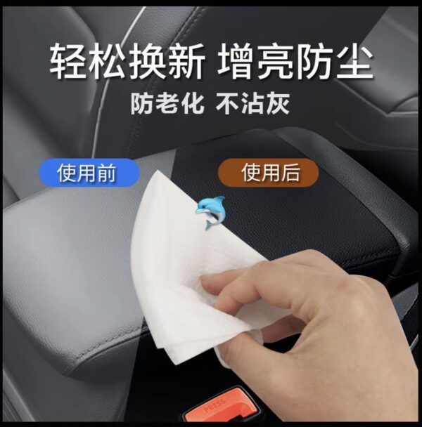 🌟汽車內飾鍍膜濕巾🌟 多功能buff疊滿!清潔+鍍膜+上光+養護四合一✨ 一步到位,灰塵、油汙、指紋擦完立馬消失,不留🚫水痕,鍍膜層形成保護盾,防刮防老化 ,抗紫外線👏!皮革座椅越擦越軟,塑料件恢復光澤,儀表盤🚫不沾灰,還能去異味,留下淡淡清香🌹,坐車都變治癒~ 🔬 黑科技工藝太走心!採用微米級清潔纖維,柔軟不掉絮,不傷內飾材質,鎖水💦配方,濕度剛好,🚫不沾手不流液,鍍膜成分溫和,🚫不含酒精,皮革/塑料/橡膠/織物都能用,高壓滲透技術,清潔力拉🈵,頑固汙漬也能輕鬆瓦解😎!