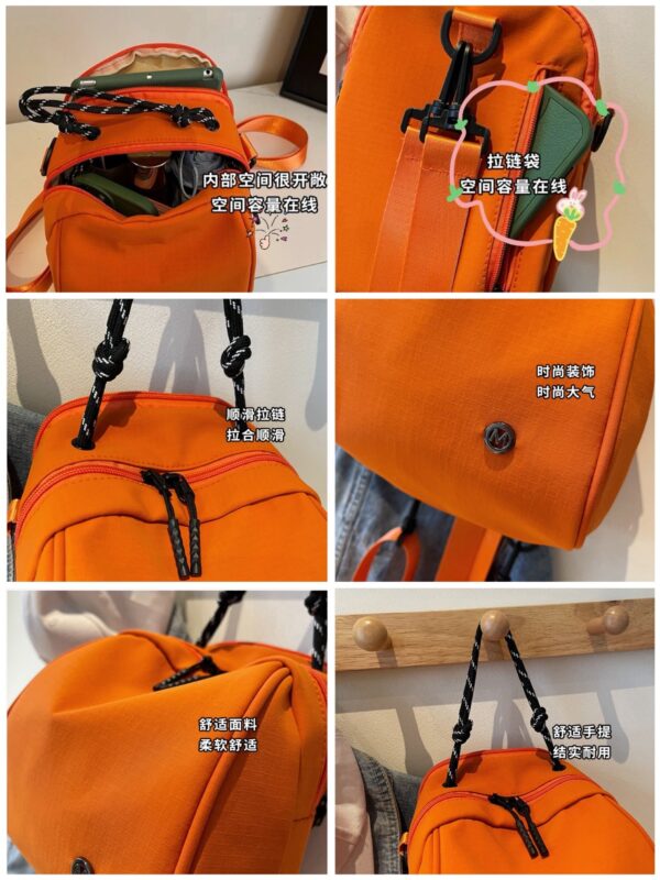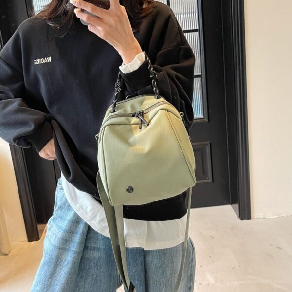 軟乎乎的帆布面料超親膚,0.22kg輕量化設計,背多久都不壓肩~約22cm×18cm×15cm的尺寸超能裝,手機📱、氣墊💄、充電寶🔋統統塞得下,內部拉鍊袋還能把小零碎歸置得明明白白。