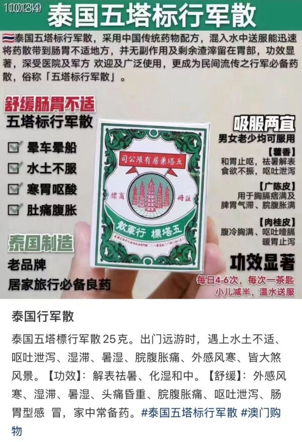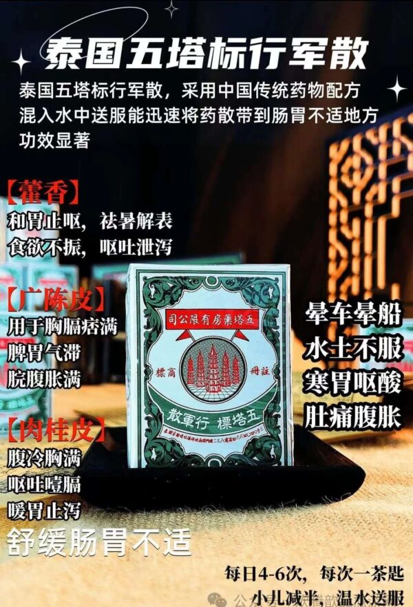 泰國🇹🇭原產《泰國五塔標行軍散》🌿水土不服、腸胃鬧脾氣?