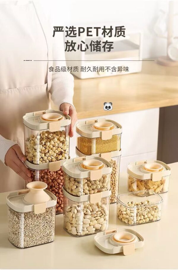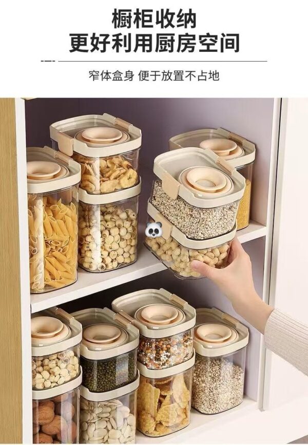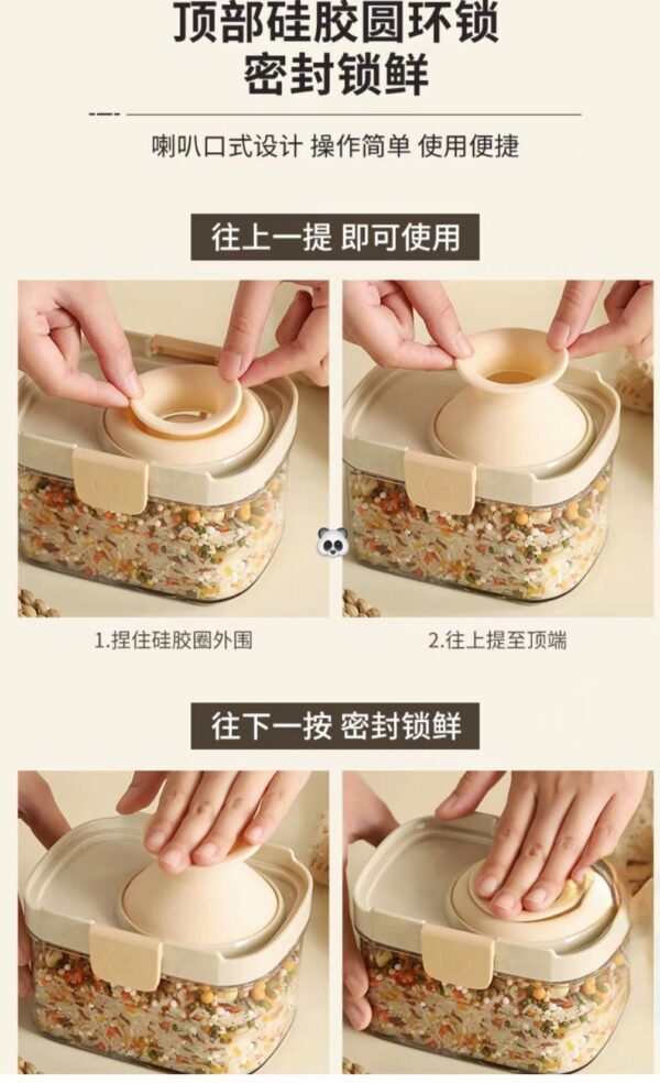 💁♀️不用開蓋就可以倒糧的密封罐‼ 你見過嗎?✨裝雜糧就特別方便,不只是儲物罐,更是廚房的藝術品!頂部硅膠圓環鎖,往上一拉,即可使用,往下一壓,即刻鎖住🔒內凹的底部設計🌀可自由疊放,讓你的廚房井井有條,美得值得分享🏡💫