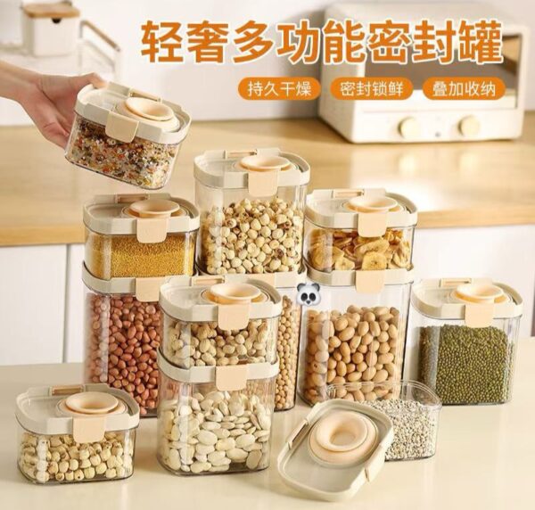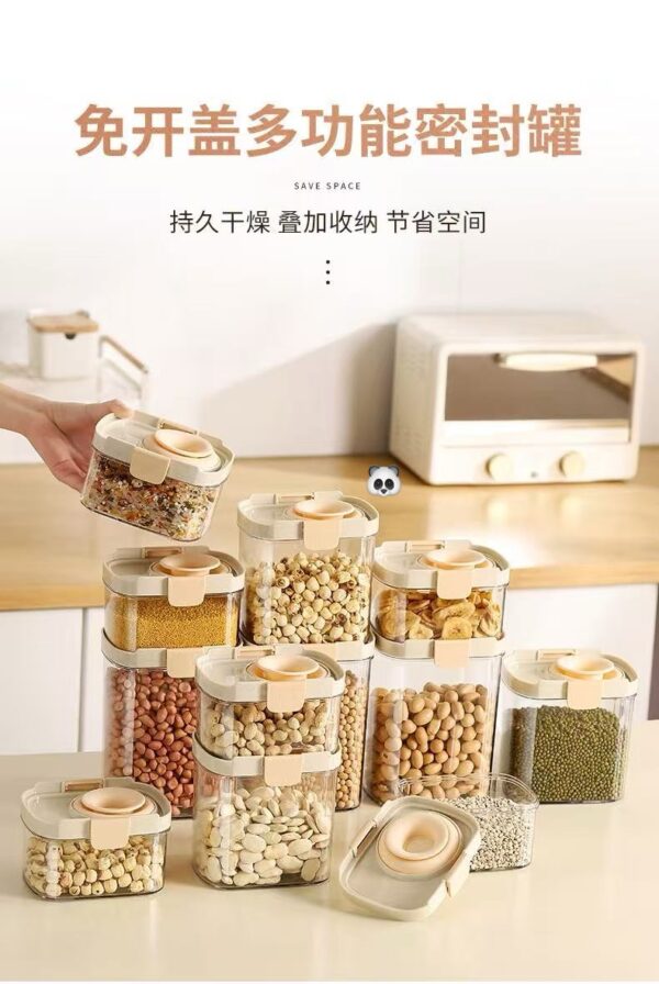 🆕 好物推薦!免開蓋多功能儲物罐 💁♀️不用開蓋就可以倒糧的密封罐‼ 你見過嗎?✨裝雜糧就特別方便,不只是儲物罐,更是廚房的藝術品!頂部硅膠圓環鎖,往上一拉,即可使用,往下一壓,即刻鎖住🔒內凹的底部設計🌀可自由疊放,讓你的廚房井井有條,美得值得分享🏡💫 ▶️規格: 中號(750ml)