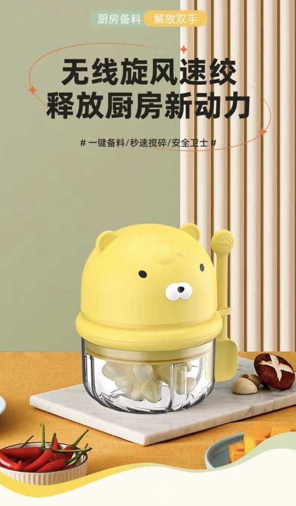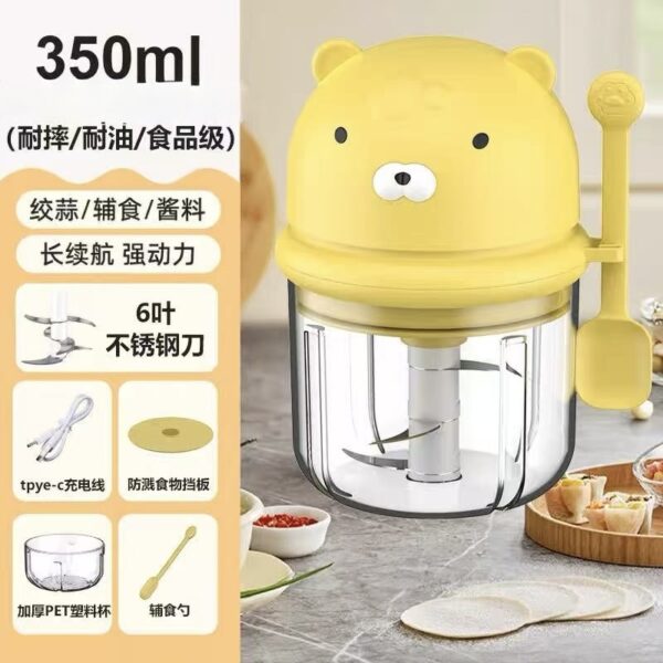 ⚡️🆕 倉庫現貨‼ 廚房備料好幫手~🐻 萌系電動料理機🔅 💁♀️懶人福音來啦!做飯不再手忙腳亂,大容量350ml一台就夠!六葉旋風鋼刀 · 碎得細又勻 👉一按即碎,備菜超省力, 洋蔥|🌶️辣椒|🧄蒜頭|🥜花生 一機全搞定, 🌟貼心小勺設計,取用更方便👍 💥輔食 / 家常菜 / 調料都統統OK💖 顏值高又實用,放在廚房超可愛~