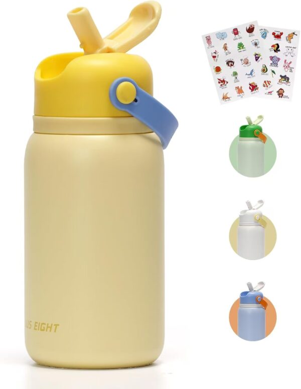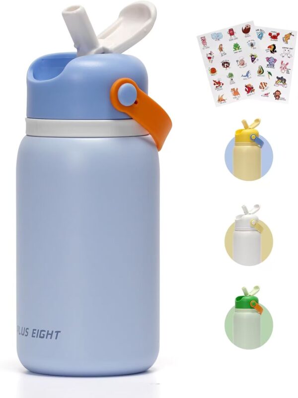 🏃🏻♀️💧【無毒安全材料】——耐用的食品級18/8不鏽鋼瓶體,100%無毒不含bpa的瓶蓋和硬吸管,具有抗衝擊和風味轉移的特點,具有超強的保溫性和易流動的特點。 🏃🏻♀️💧——這款兒童水瓶蓋上蓋子後是100%防漏的。確保當你的孩子在旅途中沒有溢出或混亂。 🏃🏻♀️💧【兒童友好型設計】-柔軟的硅膠噴嘴,對孩子的牙齒和牙齦溫和,隱藏的翻蓋吸管,讓孩子只需一隻手即可輕鬆打開和關閉,確保孩子在飲用時流暢而有節奏。打開翻蓋吸管後,孩子們立即享受輕鬆的單手飲用體驗。此外,15盎司的方便尺寸和無汗瓶身,更適合孩子的小手。 🏃🏻♀️💧【雙層真空保溫瓶】—吸管蓋兒童保溫瓶採用雙層真空保溫層,確保您的孩子每喝一口都健康清爽。此外,無汗表面帶來乾燥的抓地力,寬口設計,便於清潔和方便補充冰塊或水果。