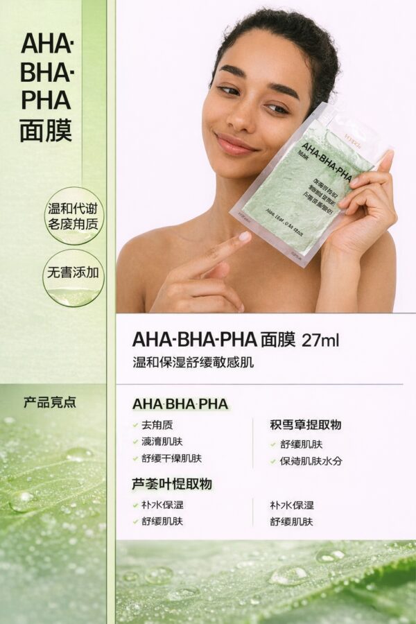 🍃 𝟑.【果酸舒緩保溼面膜】 ✅ 三重果酸 + 積雪草蘆薈 ✅ 溫和去角質,舒緩修護