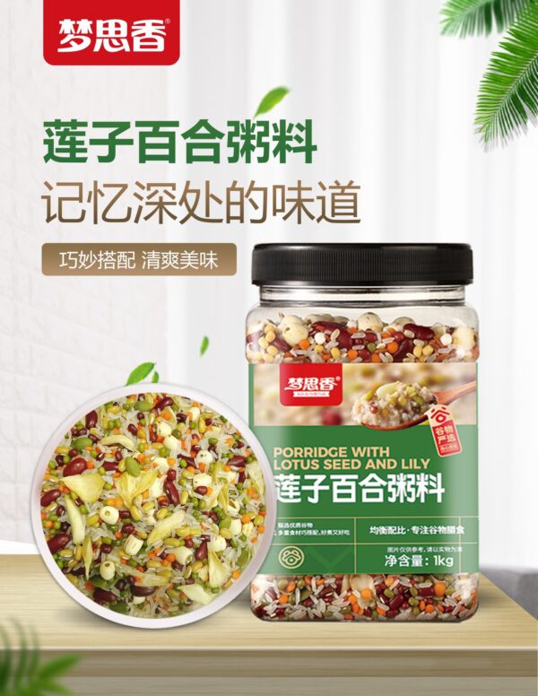 4️⃣ 蓮子百合粥(配料:大米、綠豆、紅扁豆、紅小豆、紅芸豆、綠竹豆、蓮子、百合幹、南瓜籽仁)