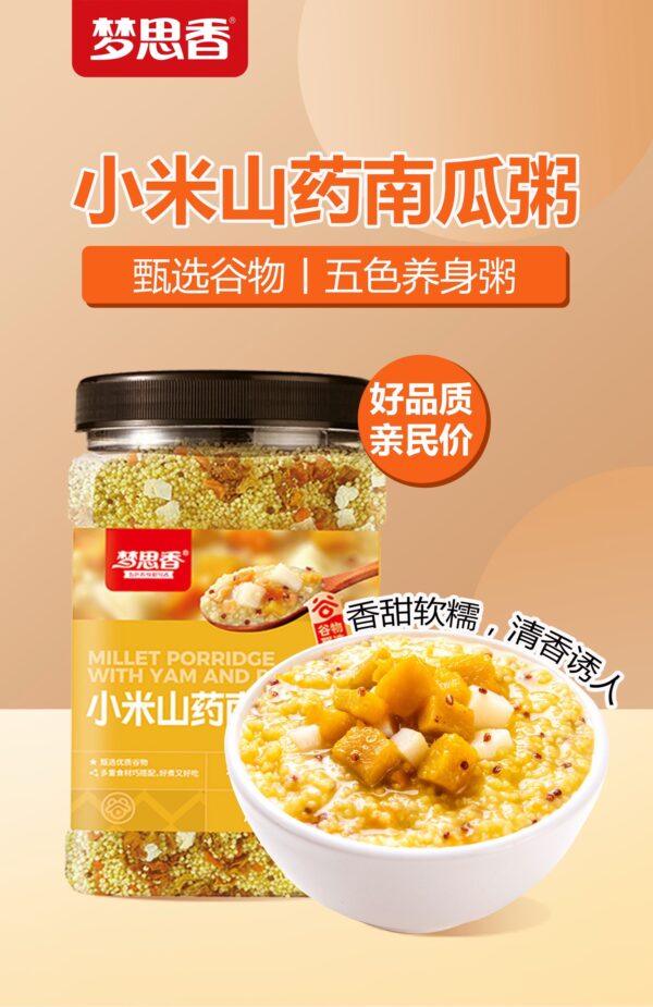 2️⃣ 小米山藥南瓜粥(配料:黃小米、玉米糝、山藥丁、南瓜幹、地瓜幹、紅扁豆、紅藜麥)