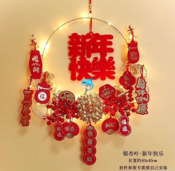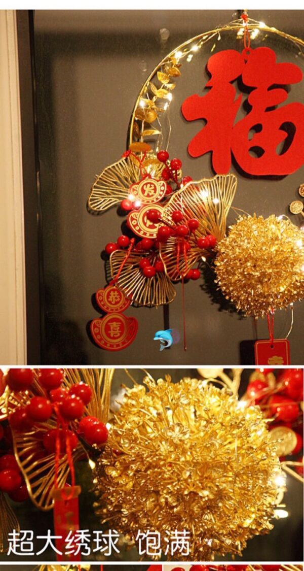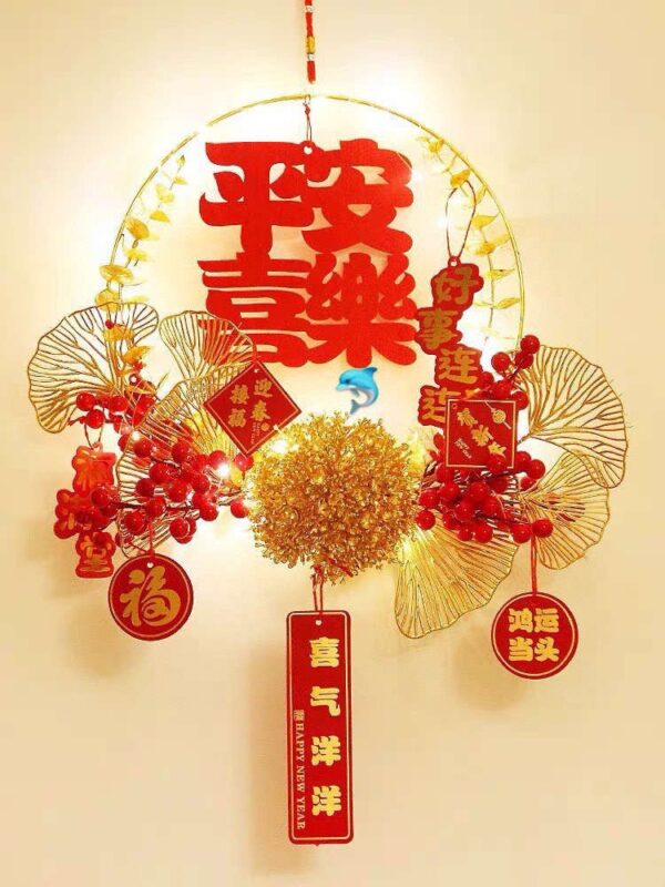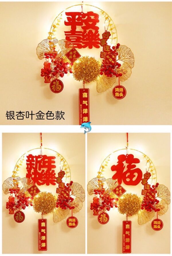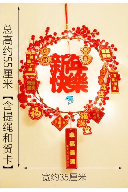 小小的細節把對美好生活的許願掛飾掛在家裡,象徵好兆頭,開啟火紅嶄新的生活❤️新年門掛花環比起以前的福字貼更加喜慶和特別,凸顯時尚大方,花環設計為圓形,寓意團團圓圓、圓圓滿滿,還可以圈住一整年的好運,紅彤彤的小果子可愛又討人喜歡,點綴上金色的銀杏葉,卡片燈裝飾,瞬間充滿濃郁的歡喜氛圍。