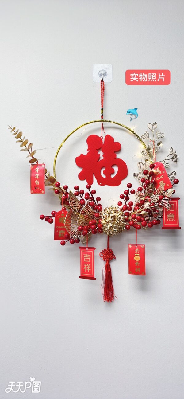 🌟迎🐎年節慶用花環🌟 小小的細節把對美好生活的許願掛飾掛在家裡,象徵好兆頭,開啟火紅嶄新的生活❤️新年門掛花環比起以前的福字貼更加喜慶和特別,凸顯時尚大方,花環設計為圓形,寓意團團圓圓、圓圓滿滿,還可以圈住一整年的好運,紅彤彤的小果子可愛又討人喜歡,點綴上金色的銀杏葉,卡片燈裝飾,瞬間充滿濃郁的歡喜氛圍。
