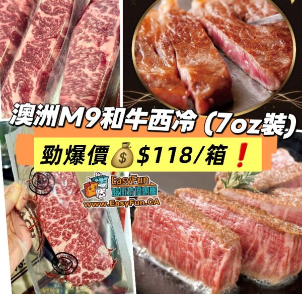 $230.00Original price was: $230.00.$118.00Current price is: $118.00. / 箱🎉澳洲M9和牛西冷🥩7安士裝嚟啦‼