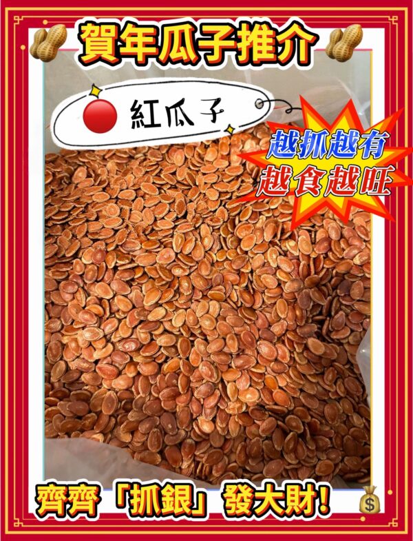 2️⃣ 紅瓜子: 💰$13/磅 👉 紅噹噹夠意頭🧧 大吉大利迎新年