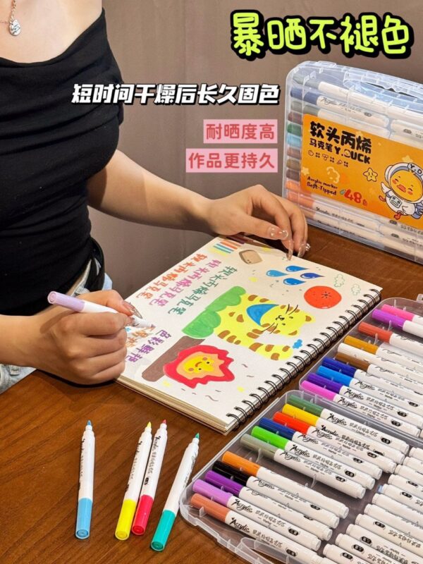 ❇️升級軟頭設計:順滑流暢不用按壓! ❇️高顯色度:色彩鮮明飽和,畫面更生動! ❇️環保安全:無毒無味,孩子也能安心使用! ❇️防水防褪色:暴晒不掉色,作品持久保存! ❇️48色大禮包:細膩線條、大面積塗色一套搞定! ⚡手慢就沒貨!自用/送禮兩相宜!