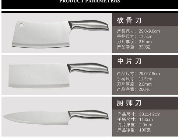 ✅全套3件套,內裡包含剁骨刀、切片刀、水果刀 「一把好刀,從一開始就決定了食物的味道!」 💫砍骨刀:很鋒利很大的一把刀,所有骨頭都可以隨便砍!沒力氣的小女生必備款,它能輕而易舉地解決 💫切片刀:人體工學設計,久用手不累,不酸。一體化刀身,刀柄與刀身零接縫,不易斷柄,防止食物殘渣與水漬殘留,使用安全放心 💫水果刀:切水果和切菜必須要分開用兩把刀,這樣不會串味