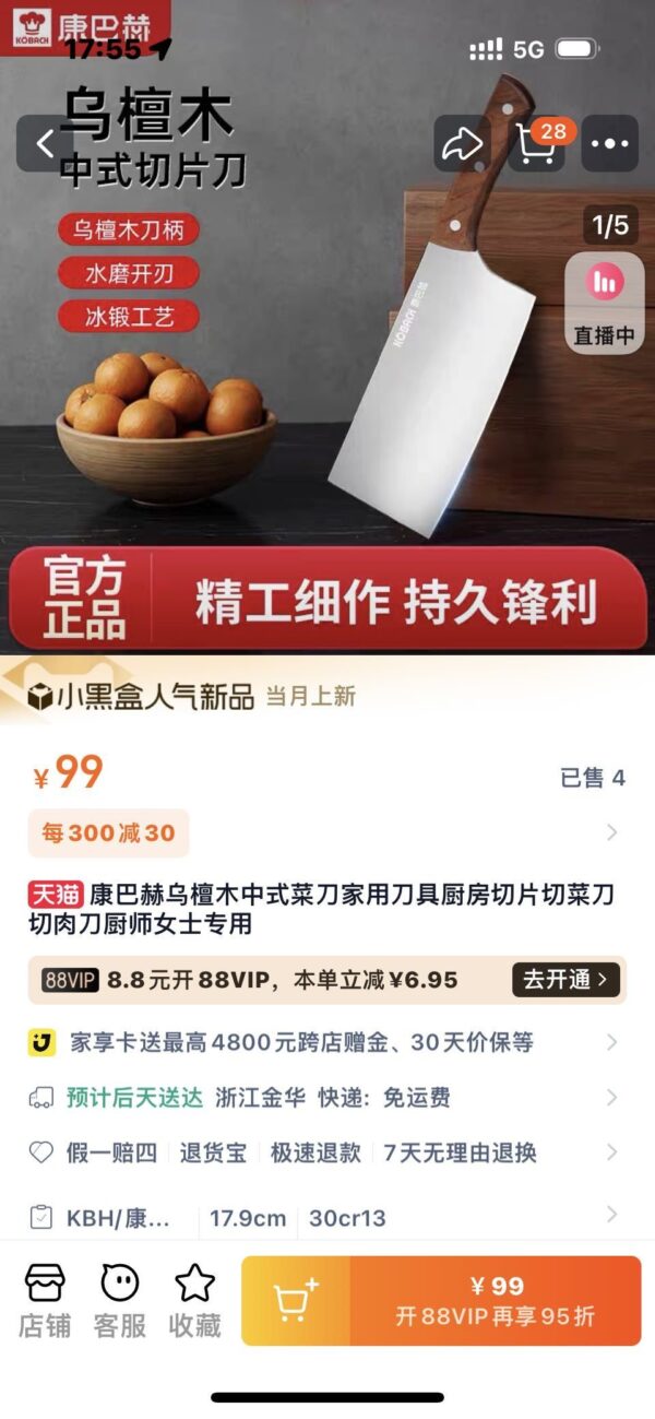 【康巴赫烏檀木菜刀】 正品保證!假一罰十🛑一定要衝‼️ 菜刀很厚你們可以看下我拍的實拍!很鋒利! 垂直削紙不在話下!一定要搶一套!帶盒帶防偽‼️ 超級鋒利順手!烏檀木自帶清香手柄 很順手‼️ 看下這個鋒利程度‼️ 這麼厚的原裝箱一切即斷‼️ 康巴赫真的做廚具沒誰了‼️