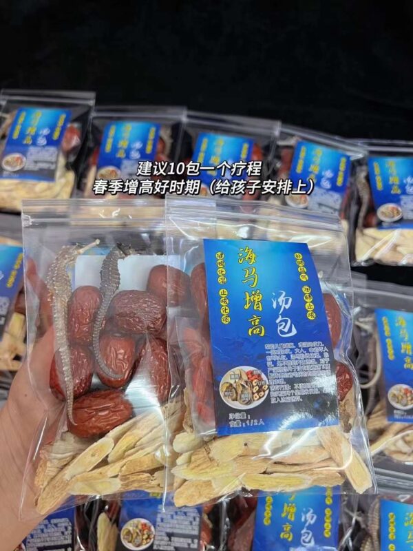 🅱️ 海馬增高湯💮(每份1包|約50–55g) 🌟 滋補強身|全年齡適合 💪 主要功效 ✔ 溫腎補氣|活血舒筋 ✔ 強身健體|補鈣增體質 ✔ 改善腰酸背痛 ✔ 提升免疫力 👨👩👧👦 適合人群 👶 成長期兒童 👩 產後調理媽媽 👵 氣血不足人士 👨 腰酸疲勞人士 🌸 春季萬物生長 正係「追高補底」黃金時機