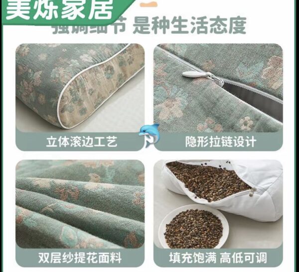 ✔️ 材質:甜蕎殼填充 + 全棉枕套,天然透氣,四季睡都