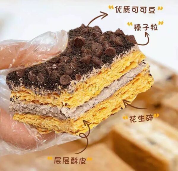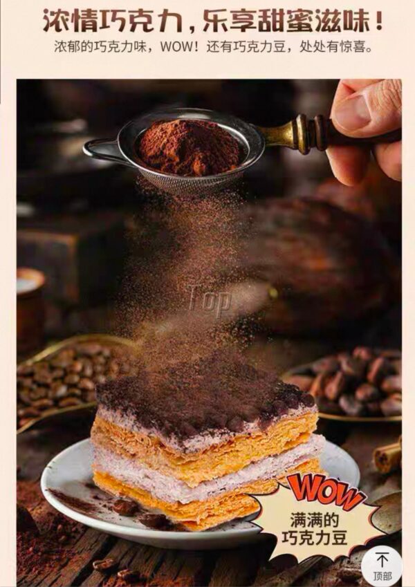 澳可可提拉米蘇,精選優質醇黑可可豆,嚴格把控可可豆的品質,每一顆豆子都是精挑細選,傳統製作,手工客生胚“三凍三壓”,口感層次豐富,千層美味,層層酥脆,一口下去,POI咔嗞嗞。添加榛子碎和花生碎,奶油與堅果相結合,口感更醇香!好吃😋