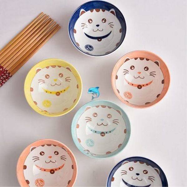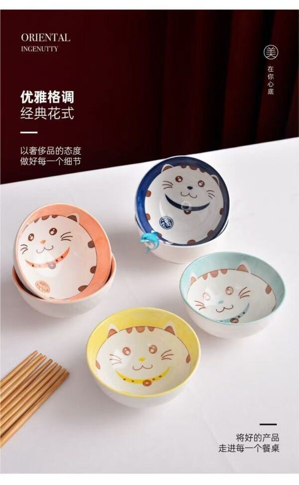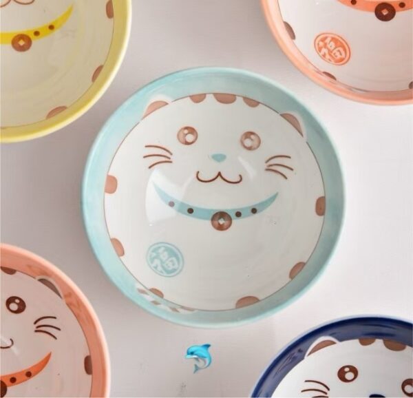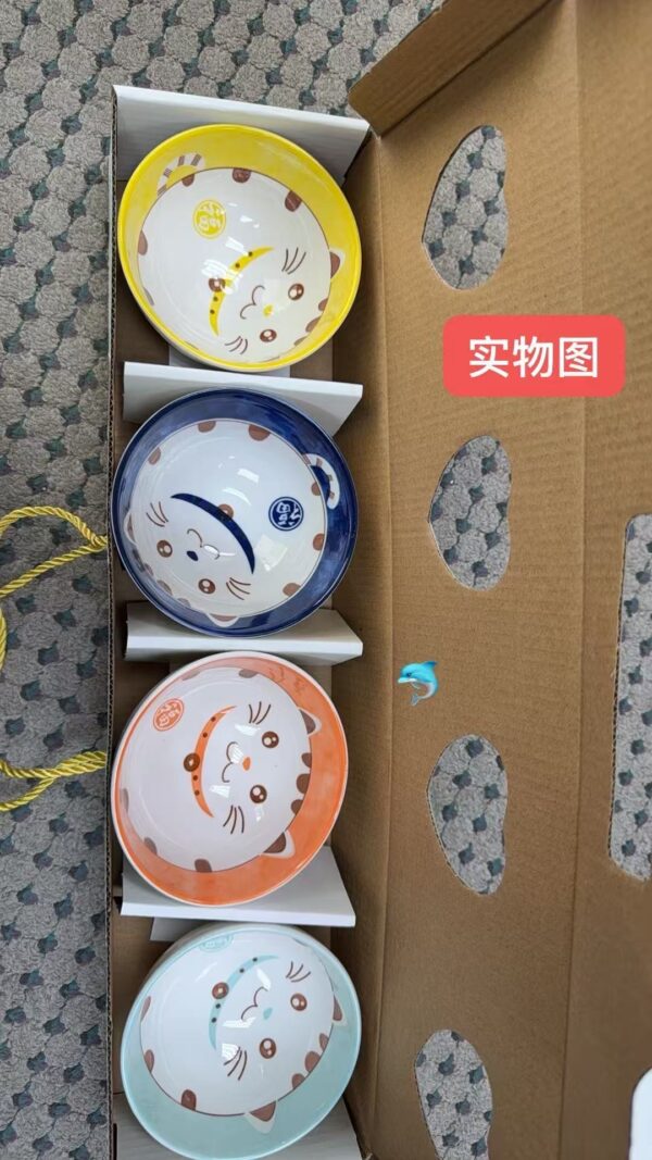 每個小碗直徑11.5cm,高度6cm,剛好一手掌握!✨碗身印有萌趣招財貓,四碗混色,色彩繽紛,讓人愛不釋手!🌈