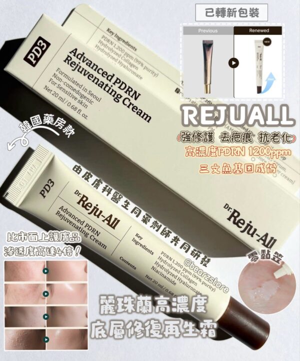 🎉藥廠最新換咗新包裝✨ 🏥🇰🇷韓國藥房款 Rejuall 麗珠蘭 高濃度PDRN底層修復再生霜 20ml ✨