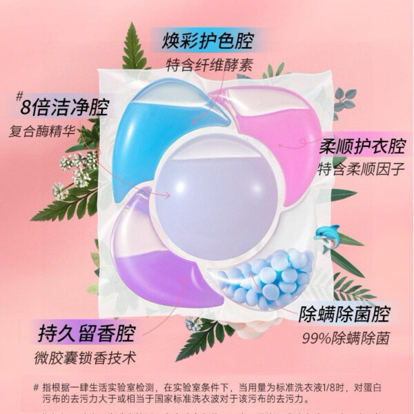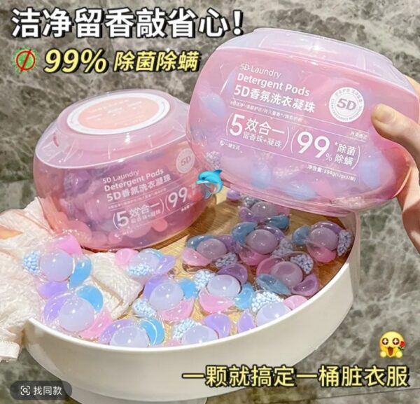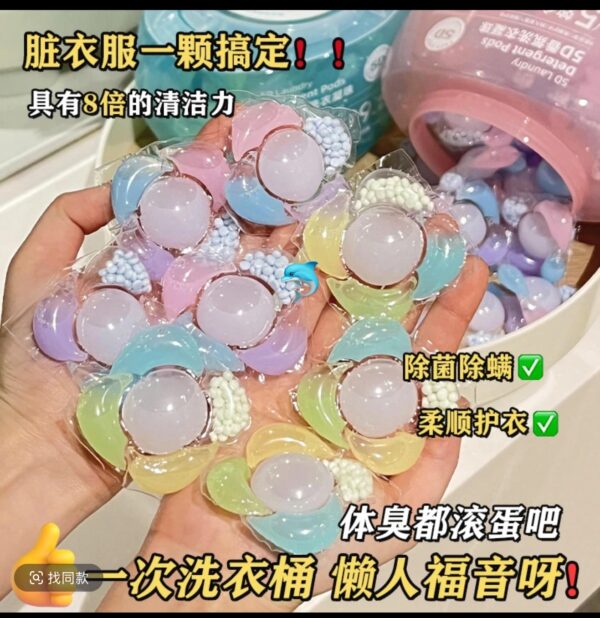 🌟5D香氛洗衣凝珠🌟開啟便捷洗衣新時代,超強清潔力,是它的“祕密武器”。一顆小小的凝珠,蘊含多種高效去汙活性成分,遇水💦瞬間釋放千倍清潔力。不管是衣服上的油漬、汗漬,還是不小心沾染的果汁🥤、咖啡漬☕️統統被它“一網打盡”。丟進洗衣機,無需費力搓揉,就能輕鬆洗淨衣物,還你潔淨如新。