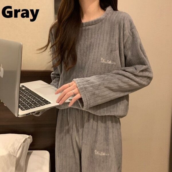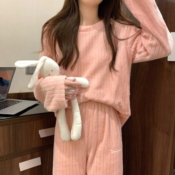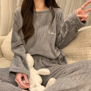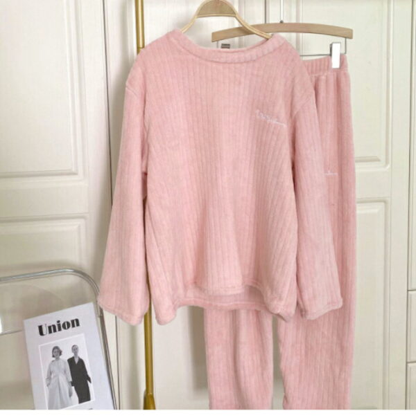 ✨珊瑚絨睡衣套裝✨ 一穿上就像被暖暖抱住🥰 柔軟細膩的雙面珊瑚絨,親膚又保暖, 在家穿超舒服,追劇、睡覺、居家都合適!