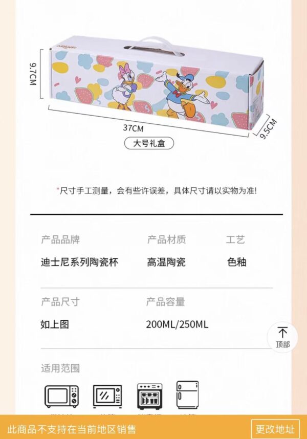 容量:250ml 尺寸:8.5cm×8.9cm 禮盒裝:米奇➕米妮➕唐老鴨➕黛絲各一個 材質:陶瓷