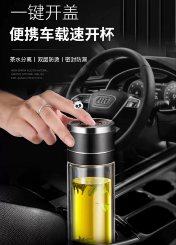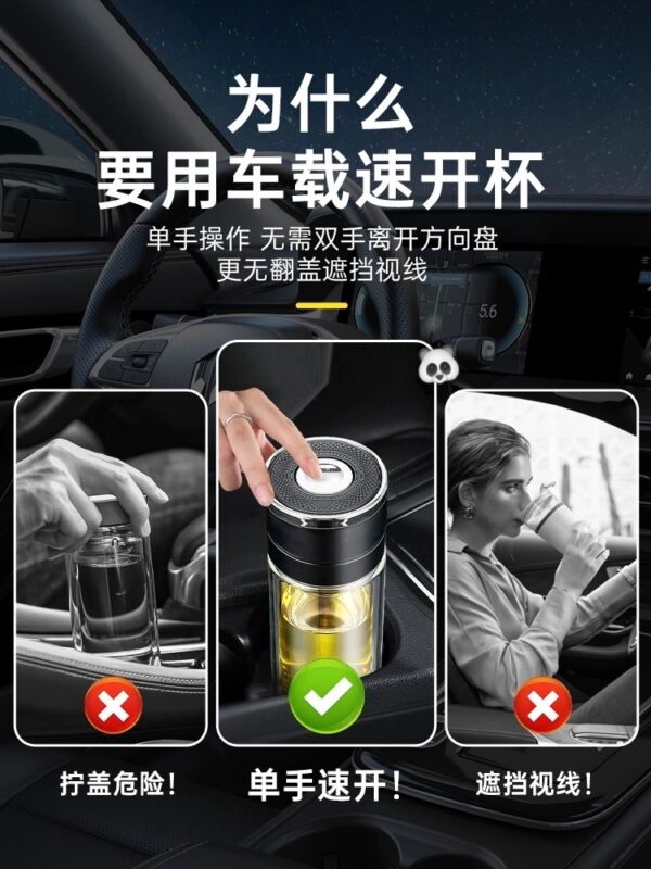 🎉清貨特價‼ ✨出行茶飲新體驗 – 時尚便攜速開杯✨ 一款專為車載而設計的杯子👋開車喝水兩不誤🎈一鍵開蓋好看又好用💃避免了行車喝水,雙手開蓋的麻煩,單手一按即可開蓋,簡單又快捷💯喝完水只需輕輕下按杯蓋就能蓋上🤗開車不影響安安全全在路上👯親測試!好用推薦👍👍 ✅優質加厚雙層高硼硅玻璃保溫又防燙✅食品級密封圈確保無滴漏意外✅分體茶隔便於不用茶飲需求 ▶️容量:400ML