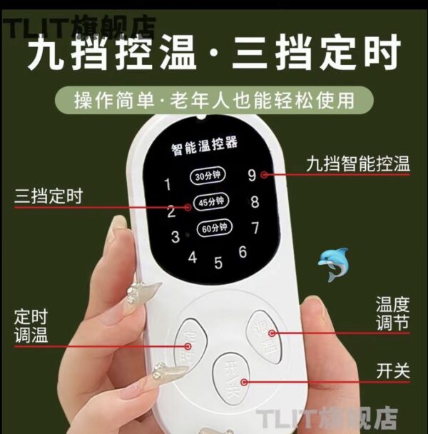 墊內填充陳年艾絨,加熱後釋放艾草精油,溫熱滲透肌膚,比單純電熱墊多一層艾灸理療效果。9 檔控溫 + 定時調節,溫度和時間都能自由調節,從溫和暖身到深層熱敷,滿足不同需求,還能避免忘記斷電的安全隱患。