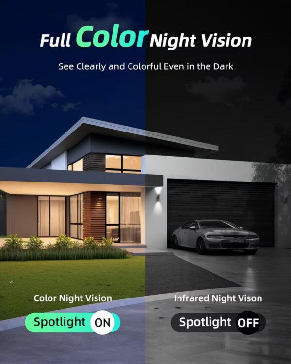 ✅ 2K高清+全綵夜視:300萬像素,泛光燈+紅外雙模式,10米夜視範圍,霧雪天也清晰。