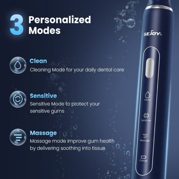 ⚙️ 3 種模式,隨心切換 • Clean 清潔模式:日常深度清潔 • Sensitive 敏感模式:溫和護齦 • Massage 按摩模式:變頻震動,舒緩牙齦 適合不同牙齒與牙齦狀態使用。