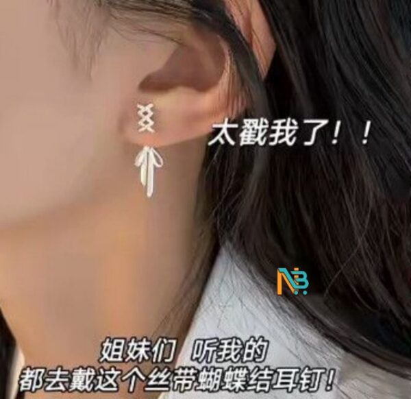 絲帶+後掛設計|溫柔中帶點個性✨ 簡約冷淡風,輕鬆提升氣質感 ✔️ 蝴蝶結絲帶元素,精緻又吸睛 ✔️ 後掛設計,側面也好看👀 ✔️ 輕盈不壓耳,日常百搭 💫 約會、上班、拍照都超加分 一戴上就是氛圍感美女~