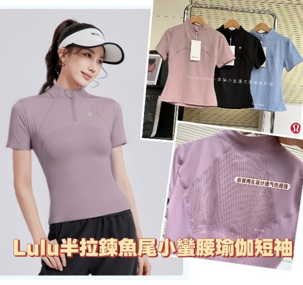 🧘♀️Lulu半拉鍊魚尾小蠻腰瑜伽短袖✨
