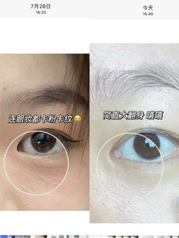 堅持用=肉眼可見變化❗️❗️ ❇️幹紋細紋被“潤開” ❇️眼周更緊緻更飽滿 ❇️黑眼圈慢慢淡下去 用完真的會忍不住說一句: “後勁太猛了‼️”