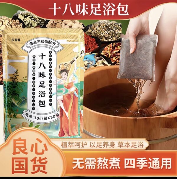 ❄體寒星人:秋冬手腳冰涼、姨媽痛、畏寒怕冷 💼熬夜打工人:久坐水腫、疲憊乏力、睡眠差 👵長輩養生黨:關節酸脹、溼氣重、氣血不暢 👶全家通用:溫和無刺激,老人小孩都能泡 🌟 核心功效 ✅驅寒暖身:艾草+老薑+花椒,暖透經絡,告別手腳冰涼 ✅祛溼排濁:24味草本復配,改善溼氣重、身體沉重 ✅助眠安神:睡前泡一泡,放鬆身心,沾床就睡 ✅舒緩疲勞:緩解久坐痠痛、腿腳僵硬,渾身輕鬆 ✅溫和養膚:抑菌去味,改善腳臭,肌膚更細膩 🛠️ 製作工藝 傳承老北京古法配方,老師傅科學配比🌿 嚴選陳年艾草、老薑、紅花、益母草等天然草本 不打粉、真材實料看得見,拒絕碎渣敷衍 高溫烘乾鎖鮮+獨立無菌包裝,保留草本活性 免熬煮!熱水一泡5分鐘出濃湯,懶人狂喜👏