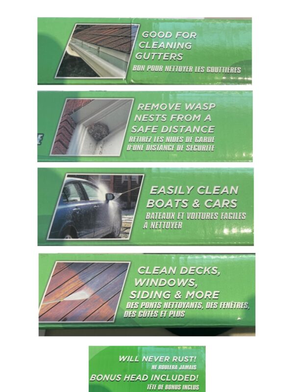 🌟最大噴射距離大約15米(會受家裡水壓影響)適用於各種清潔任務。🉑不用梯子就能清潔從地面到達二樓的外牆和門窗🪟此外,還🉑用來清潔遮陽傘、椅子、游泳池等等。適用於所有標準的花園軟管👍