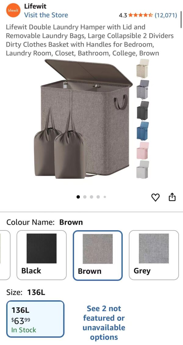 🌟Lifewit 136L雙格洗衣籃🌟