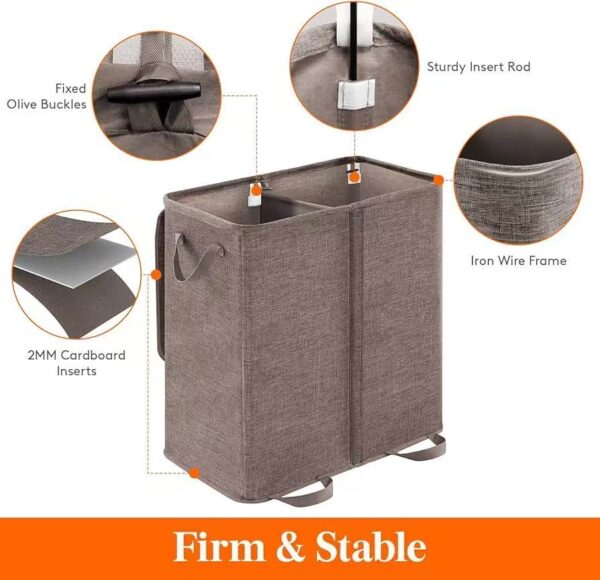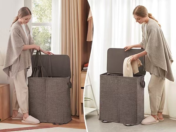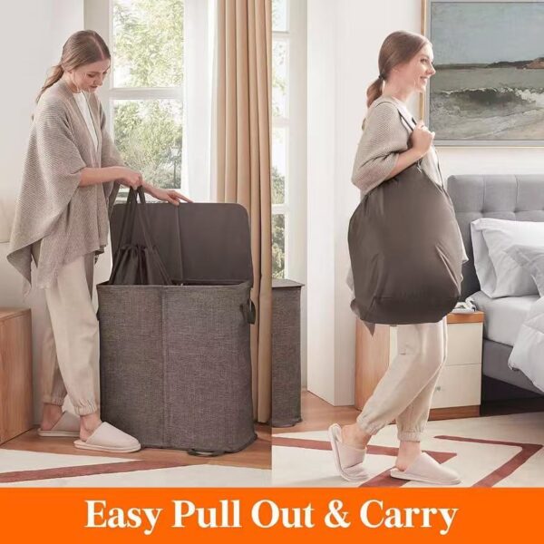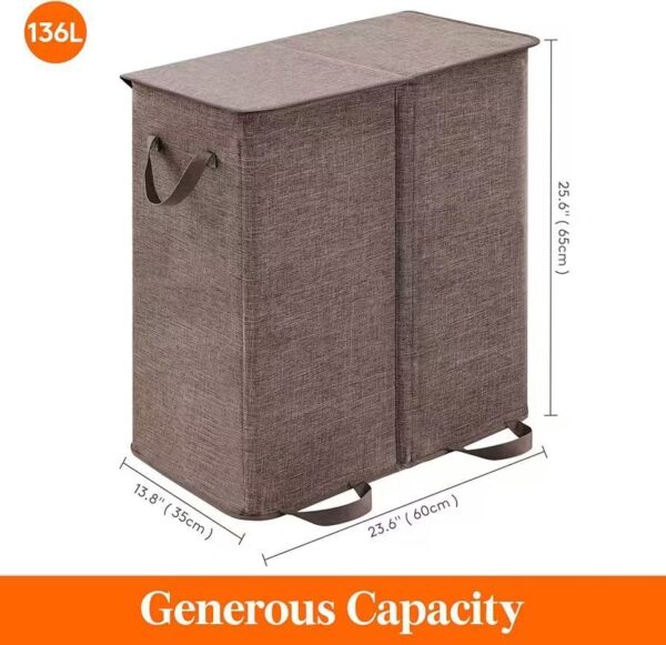 🧺 超大容量 一家人都夠用 👕 雙格分類 深淺色分開放 💪 加固支撐 唔塌唔變形 💧 防水面料 易清潔耐用 🧼 內袋可拆洗 更衛生 👜 手提設計 搬上搬落都輕鬆 📦 可摺收納 唔用都唔阻位