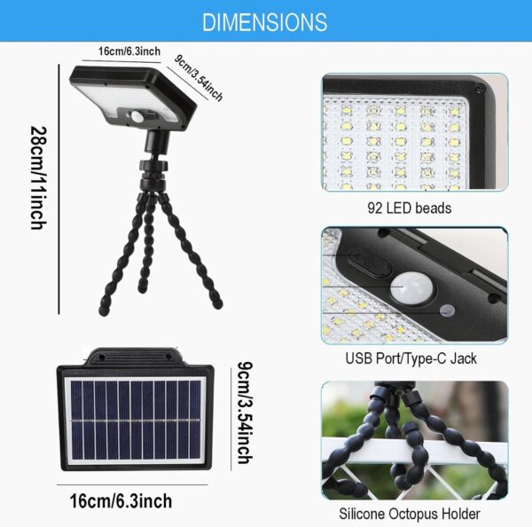 ✨核心黑科技賣點 ✅八爪魚百變支架:可纏繞可固定,欄杆、樹枝、圍欄隨便裝,360°無死角照明 ✅太陽能+USB雙充電:白天晒太陽自動充,陰天室內USB也能補,續航無憂 ✅人體感應+多模式:人來即亮、人走漸暗,常亮/感應/節能三檔可調 ✅超亮防水耐造:高亮LED,戶外暴晒雨天都能用 ✅安裝零門檻:不用打孔不用工具,一纏一夾5分鐘搞定