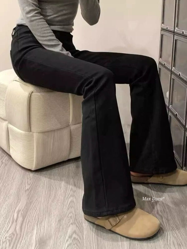 這條黑色彈力牛仔微喇褲