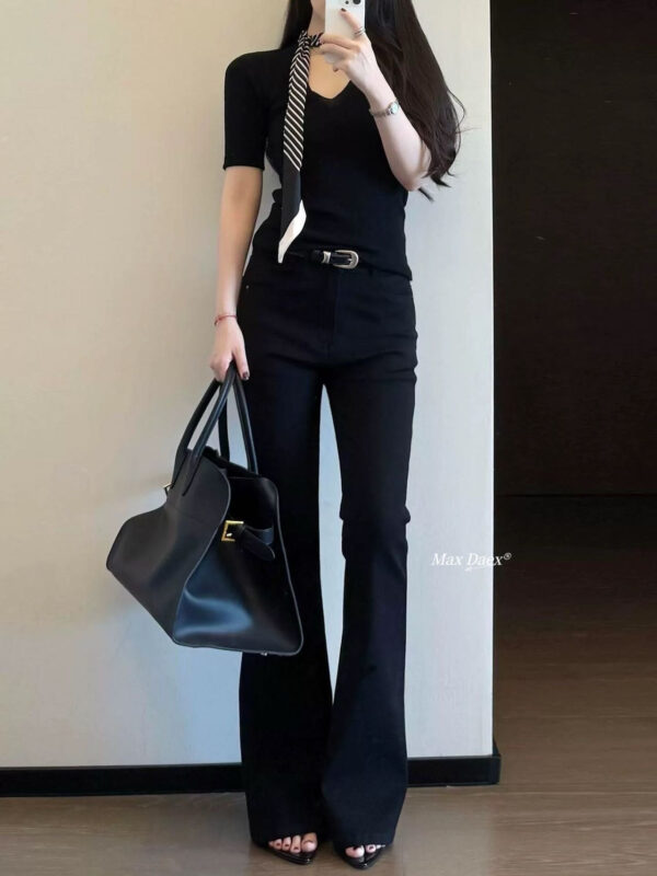 Max Daex黑色彈力牛仔喇叭褲