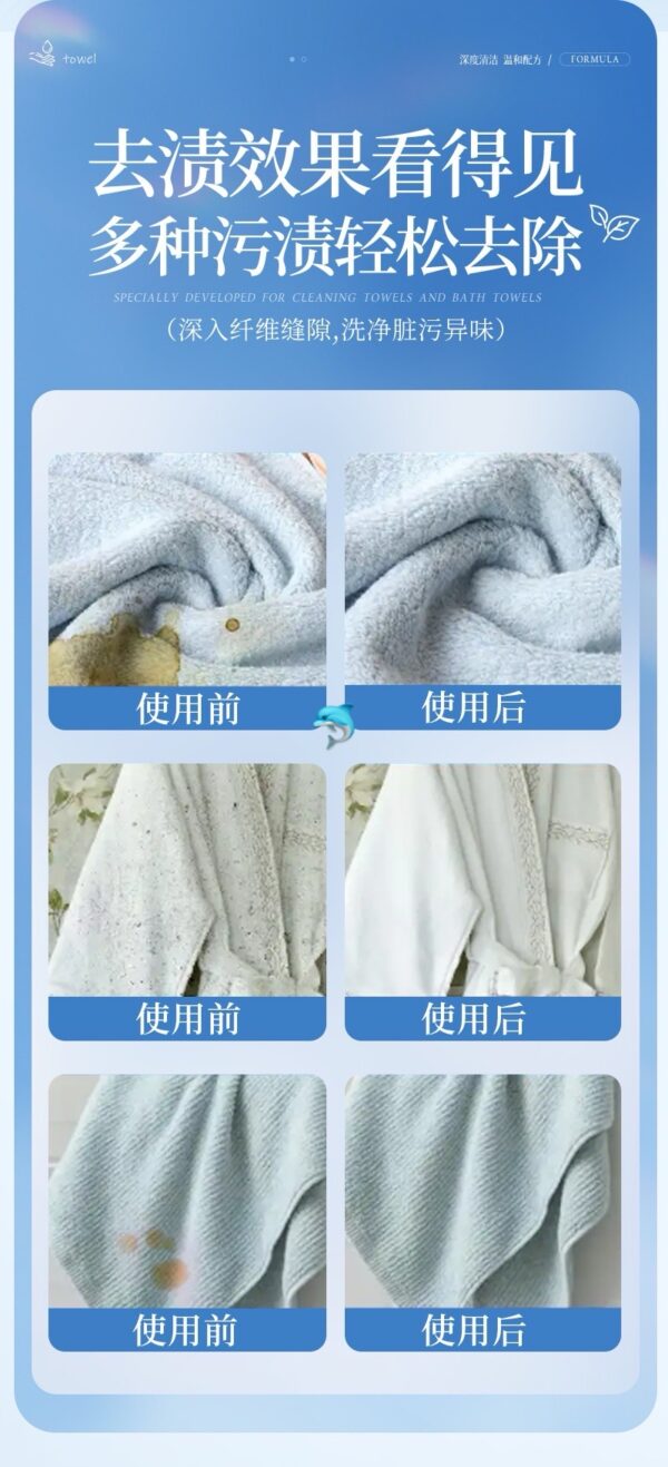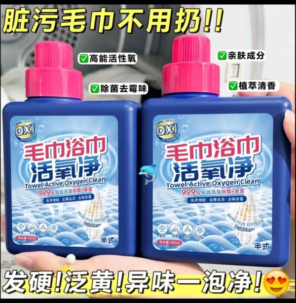 毛巾用久了👇 ❌ 發黃 ❌ 黏膩 ❌ 一股潮溼黴味,每次擦臉都像在用“細菌抹布”…太崩潰😩 👉 用這個“起死回生”!一泡煥新✨ 💥【強力去漬】汗漬、發黃、頑固汙漬