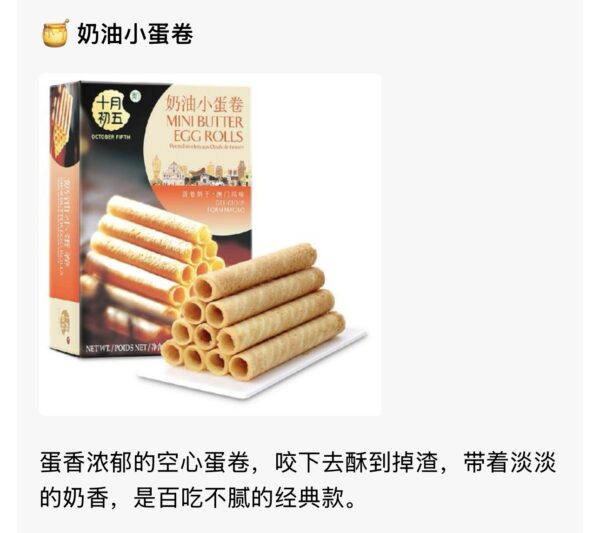 🎉倉庫現貨,歡迎訂購‼ 🍪十月初五澳門手信零食系列 這組來自澳門知名手信品牌「十月初五」的點心,每一款都是獨立小包裝藏著地道的葡式風味與中式匠心,不管是辦公室下午茶、追劇解饞還是伴手禮禮送給親友都超合適! ⏳日期到2026年6月