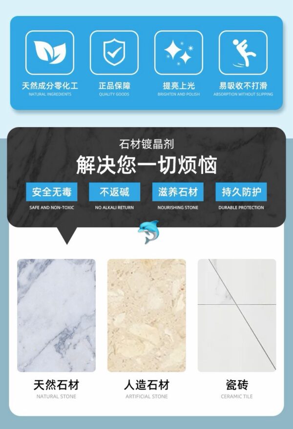 石材瓷磚鍍晶增亮劑🔥家裝後業主:剛貼的瓷磚怕刮花、滲污,用它做養護,能長久保持“剛鋪好”的亮澤感 ✨ 核心功能:瓷磚“美顏+防護”一步到位 – 強力增亮不暗沉:含納米鍍膜成分,擦完在瓷磚表面形成透明膜,光線下亮到能映出人影,比打蠟更持久
