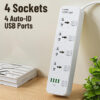 • 獨立開關+AUTO-ID智能識別,每個插孔單獨控制,不用拔插頭,省電又安全;USB口自動匹配設備電流,不用額外帶充電頭!