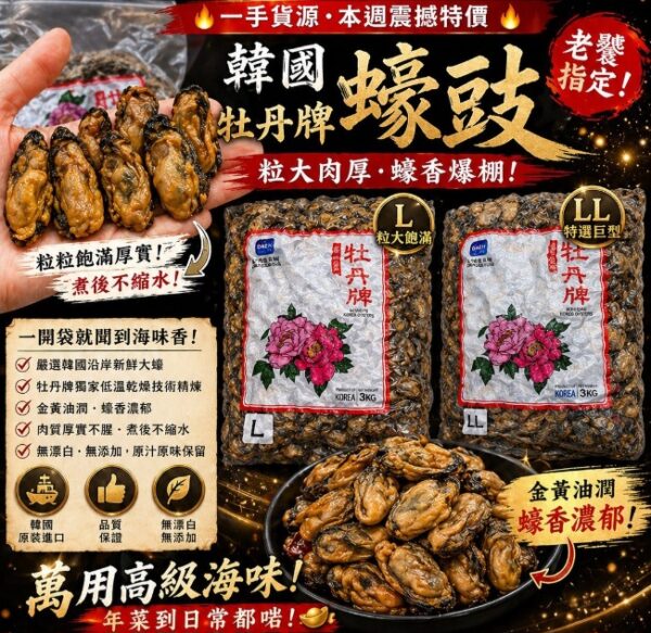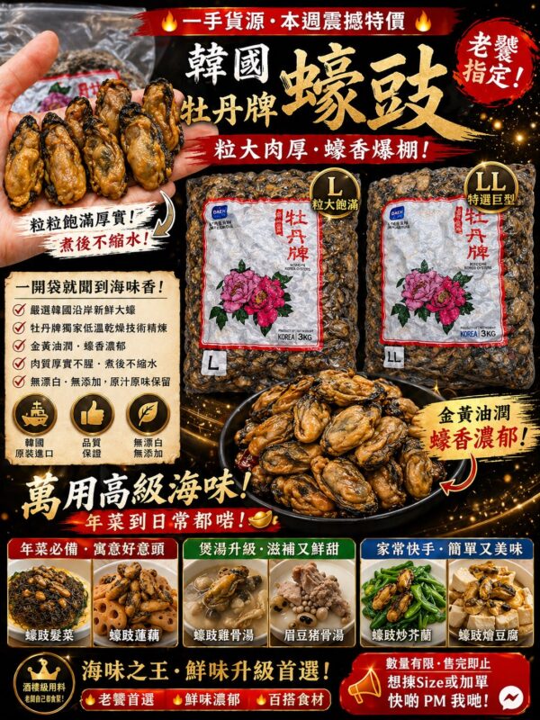 🎉倉庫現貨‼ 🔥【老饕瘋搶‼️韓國蠔王級登場】🔥 💮🦪 韓國牡丹牌蠔豉 🦪💮 🇰🇷 原裝直送|一手貨源|識貨必掃‼️