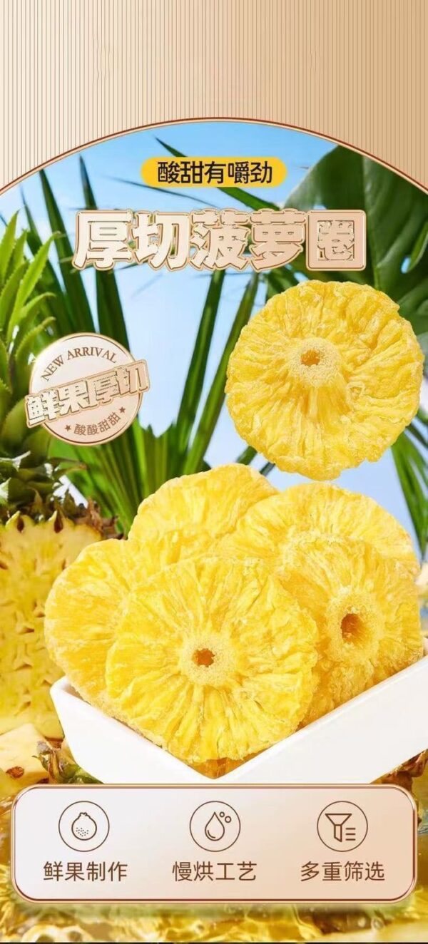 2️⃣ 菠蘿乾🍍 (300g/包) 厚切果肉‼️濃郁菠蘿香一口爆發🤤 自然清甜不死甜,越嚼越香停不下來🔥 👉 追劇、下午茶必備,解膩又過癮