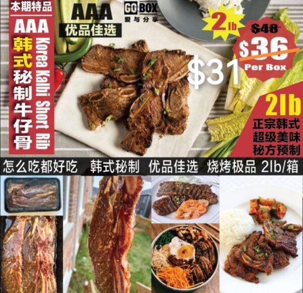 $36.00Original price was: $36.00.$31.00Current price is: $31.00. / 盒🎉夏季大特惠【AAA韓式秘製牛仔骨】